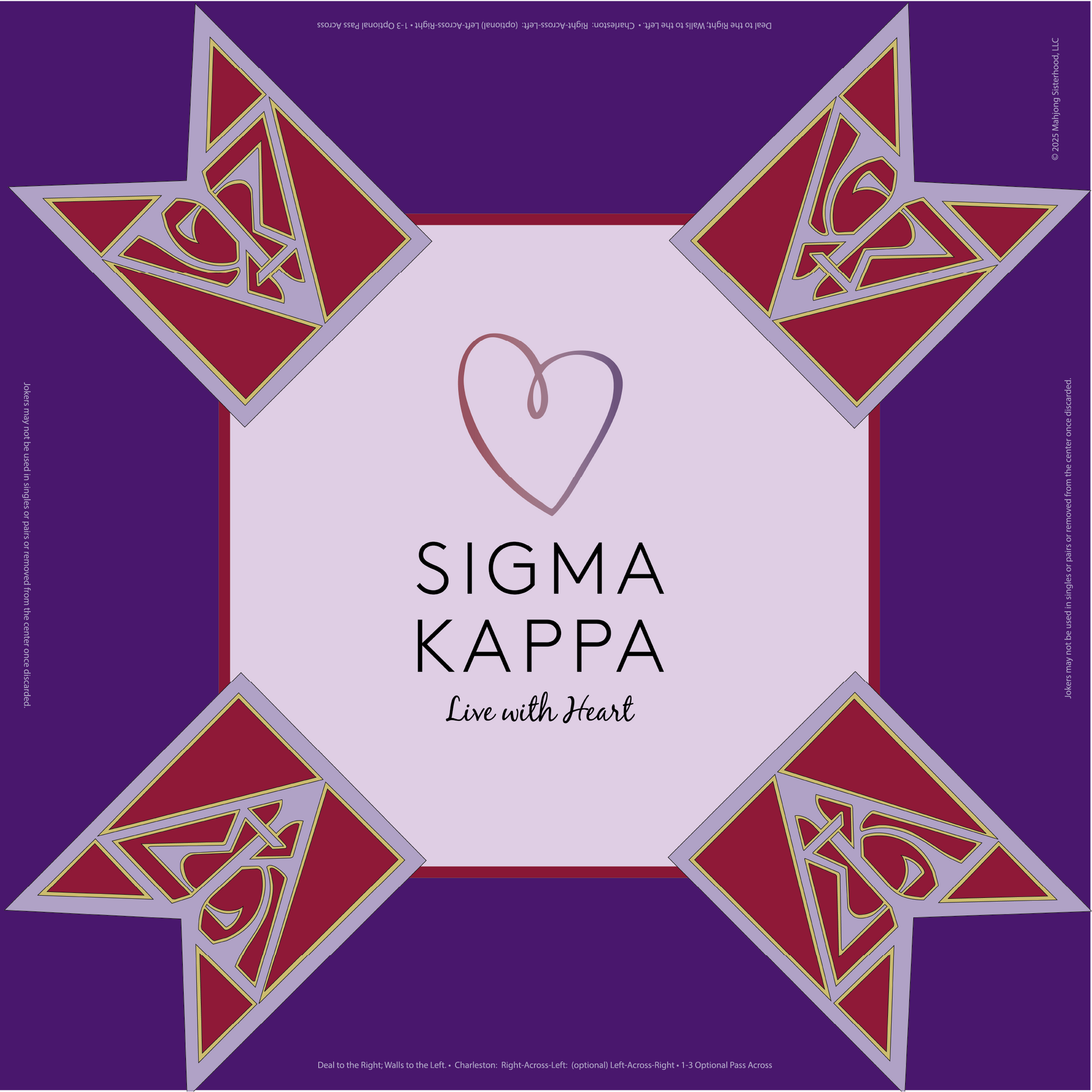Celebrate lifelong sisterhood with this delightful neoprene mahjong mat featuring the iconic Sigma Kappa Heart Logo framed by four elegant banners. Crafted for Sigma Kappa sisters who honor loyalty, personal growth, and enduring bonds across generations.