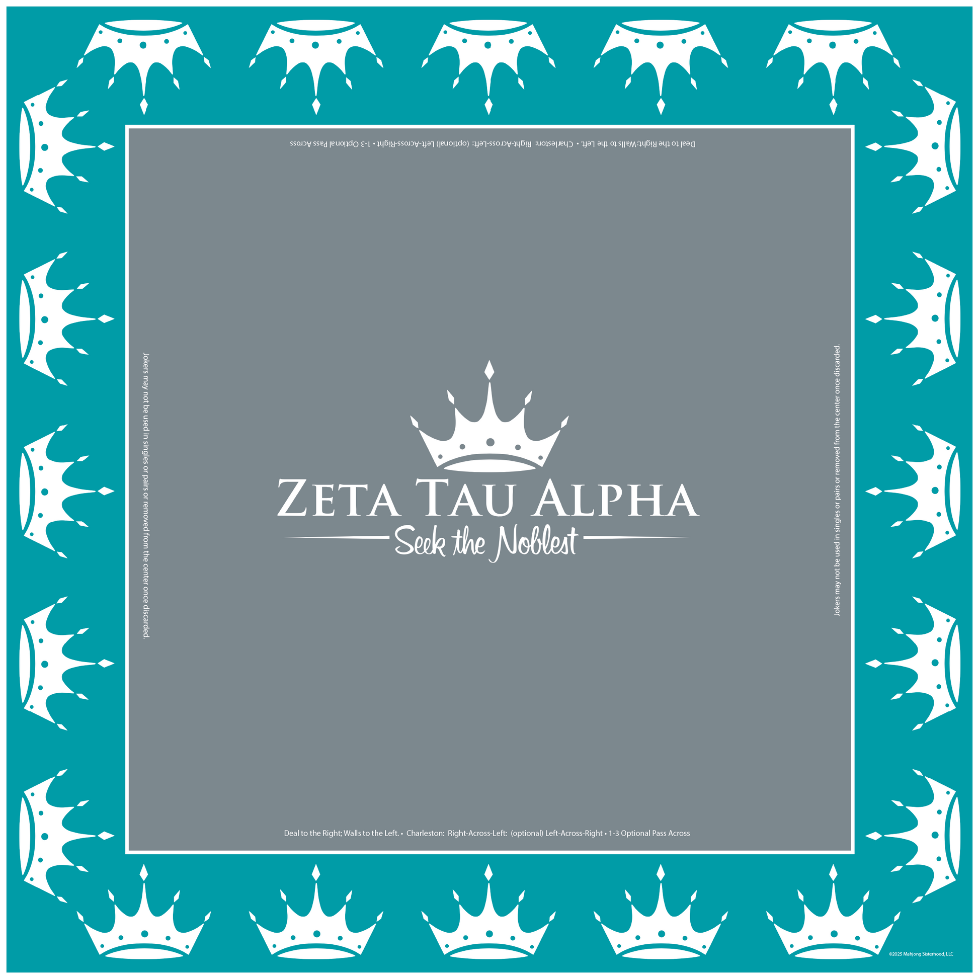 Celebrate our sisterhood with this beautiful neoprene mahjong mat in turquoise & gray, featuring the iconic crown and logo with diamond patterns. Crafted for Zeta Tau Alpha sisters who embody unity, resilience, leadership, and service in noble spirit